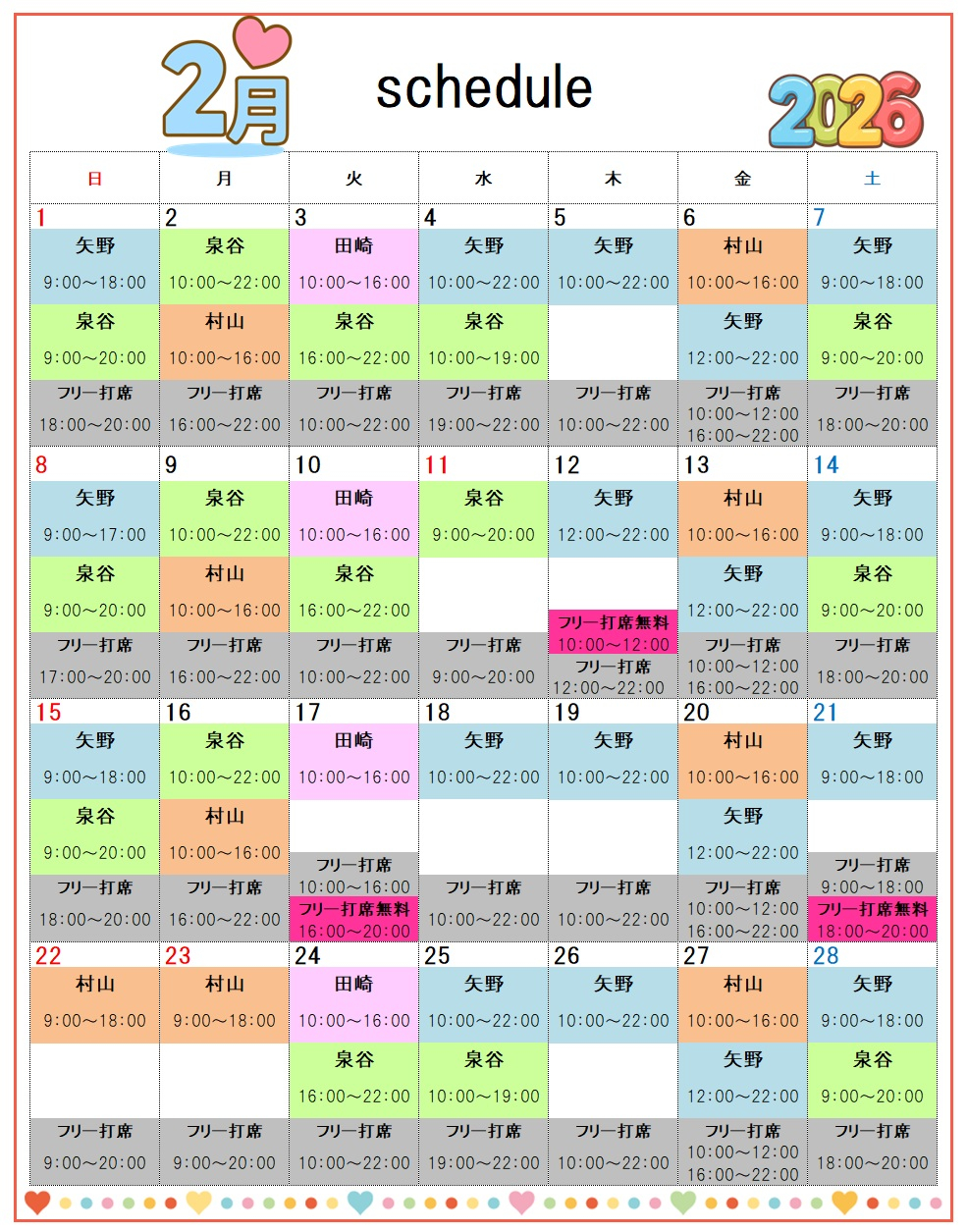 2月のスケジュールを公開しました