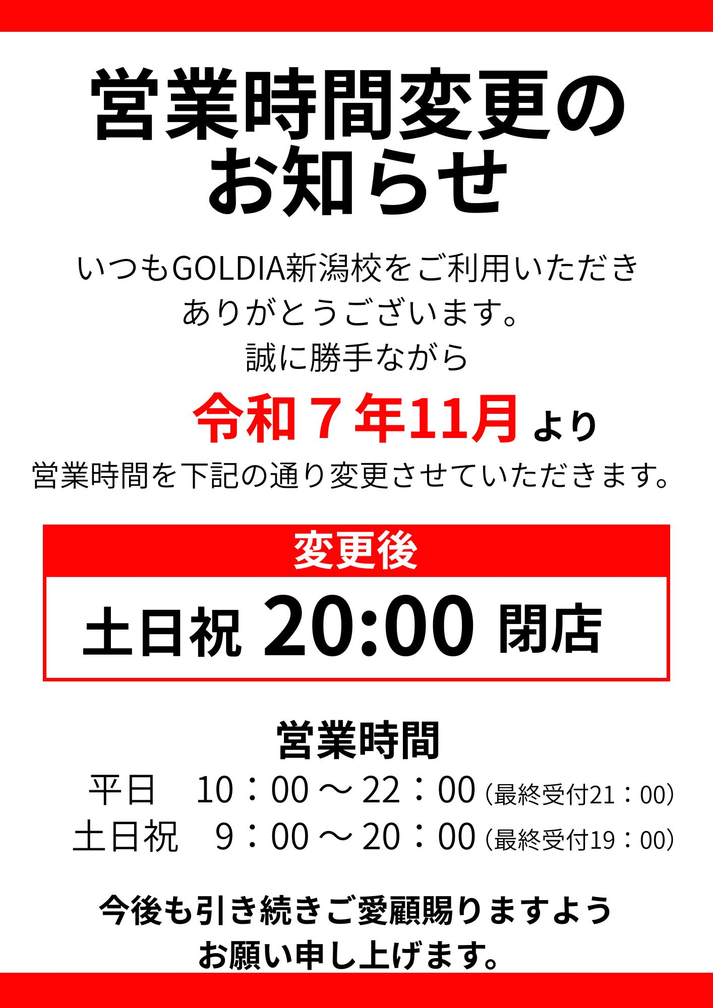 営業時間変更のお知らせ